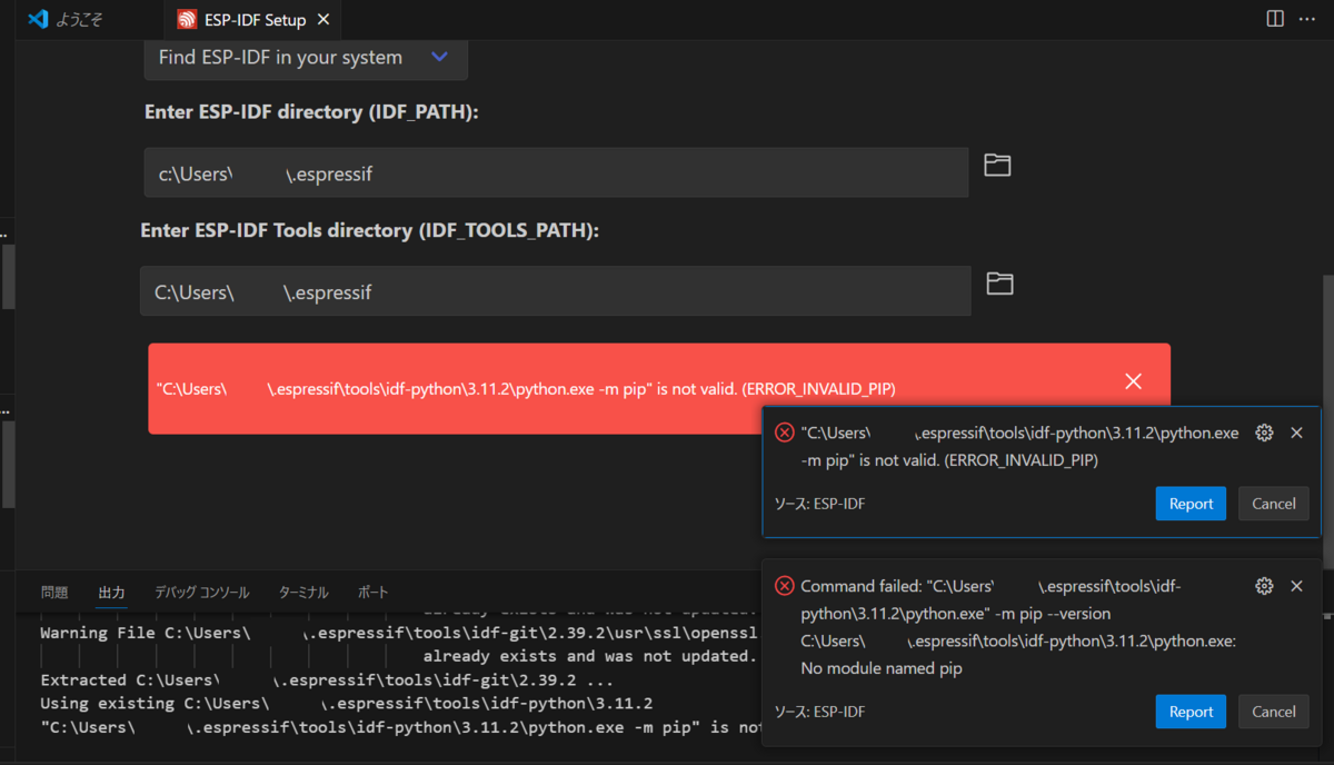 前回ESP-IDFをVSCodeでインストールしようとしたところ、pipがないというエラーが出ました。