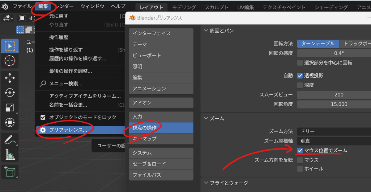 0キー(またはカメラのマーク)>Nキー(またはオプションの下付近にある<のマーク)>ビュー